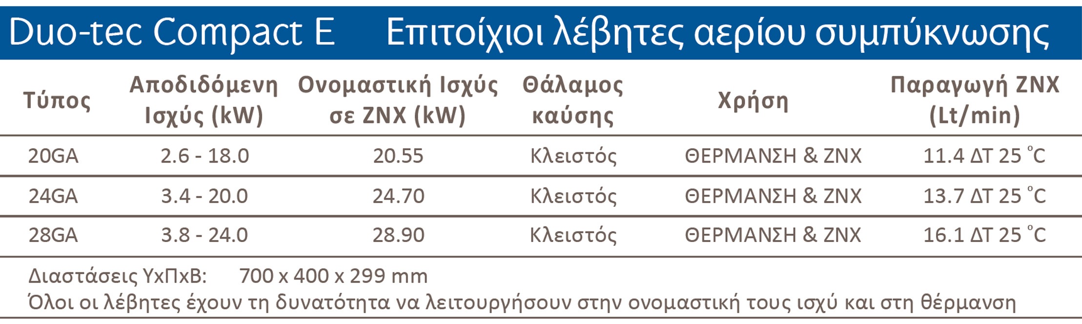 - Υψηλός λόγος προσαρμογής ισχύος σε εποχικές απαιτήσεις κτηρίων 1:7.